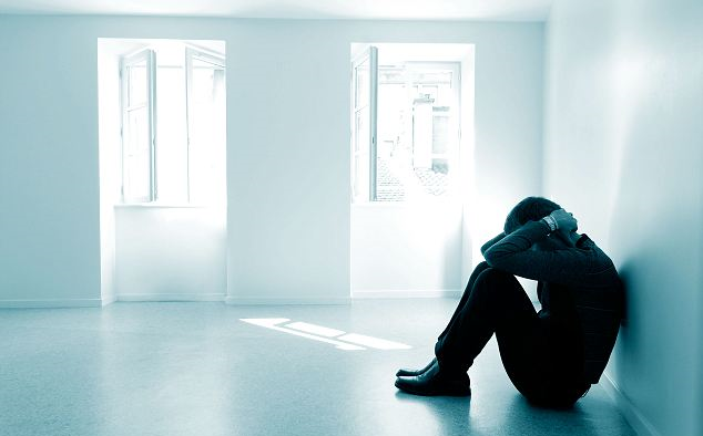 Lone stressed person in a room